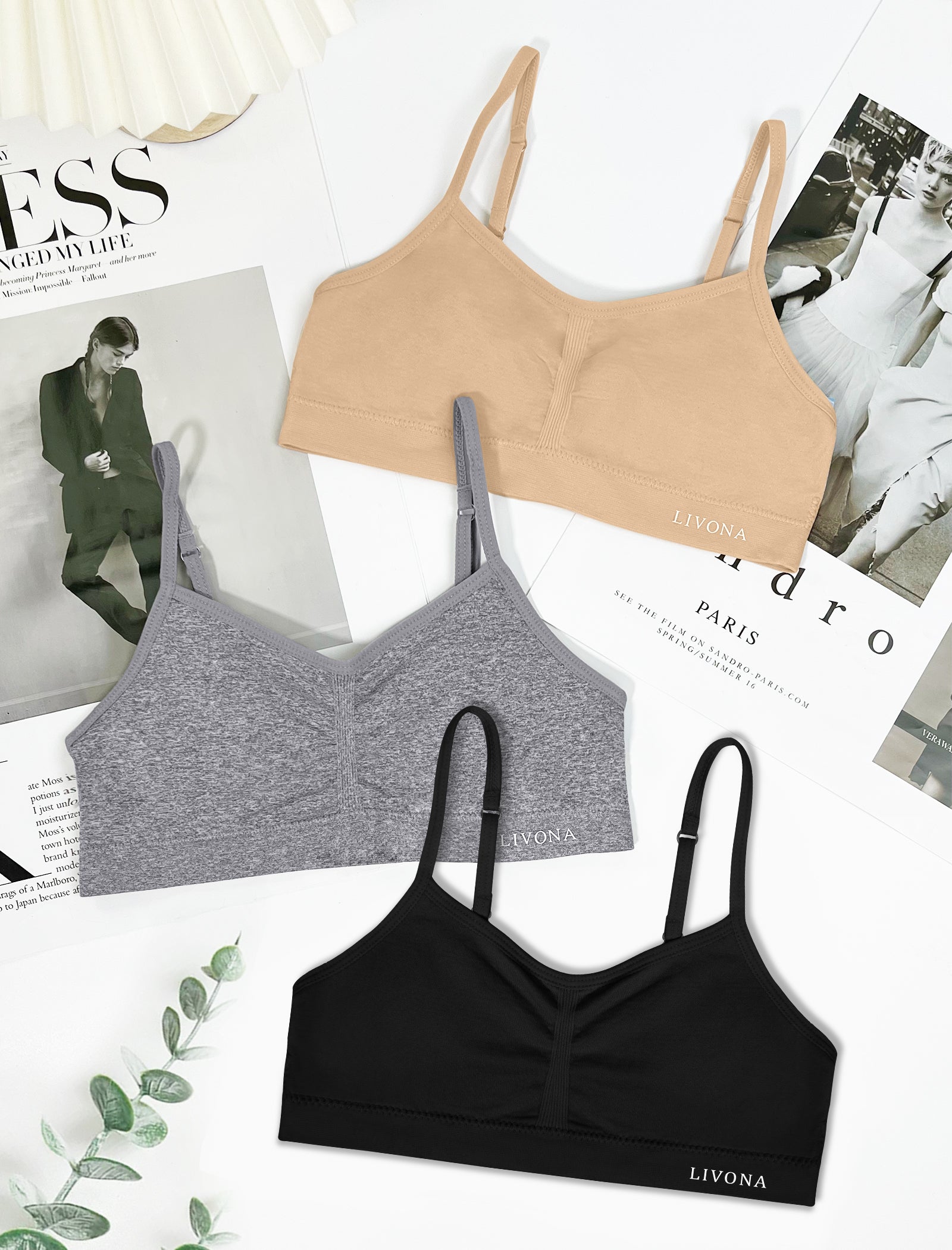 Livona 3 Pack Popular Girls Padded Training Bra Pack – Crop Cami Training Bras for Girls,Seamless Bra Design with Removable Padding